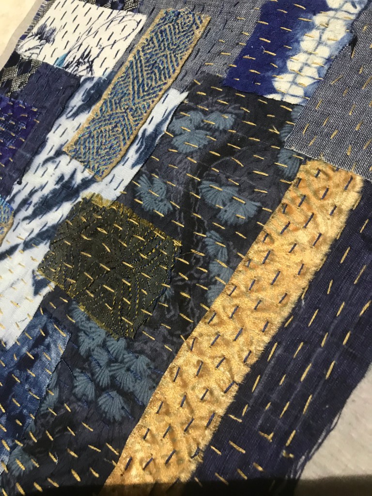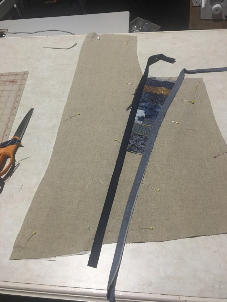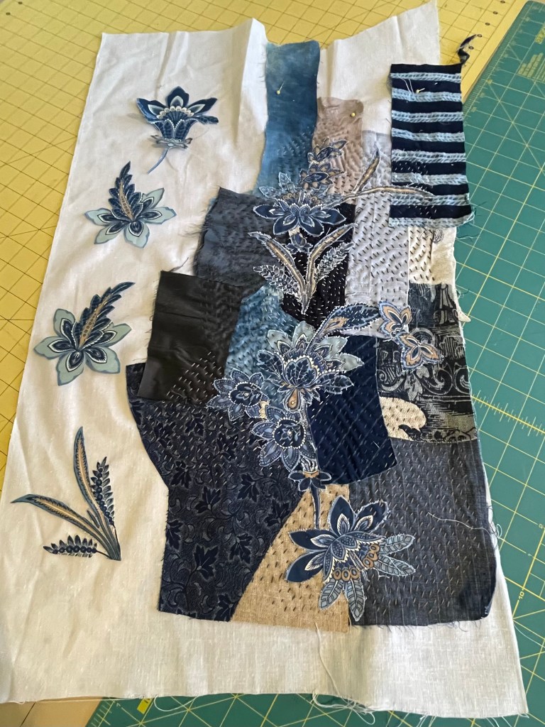 I cut different fabrics and played around with fabric type and color, but I liked my original fabric the best, and thought the ‘Boro’ would stand out better with one color background. I find sometimes I obsess too much over fabric and color combinations so I am working on making a decision and going with it.