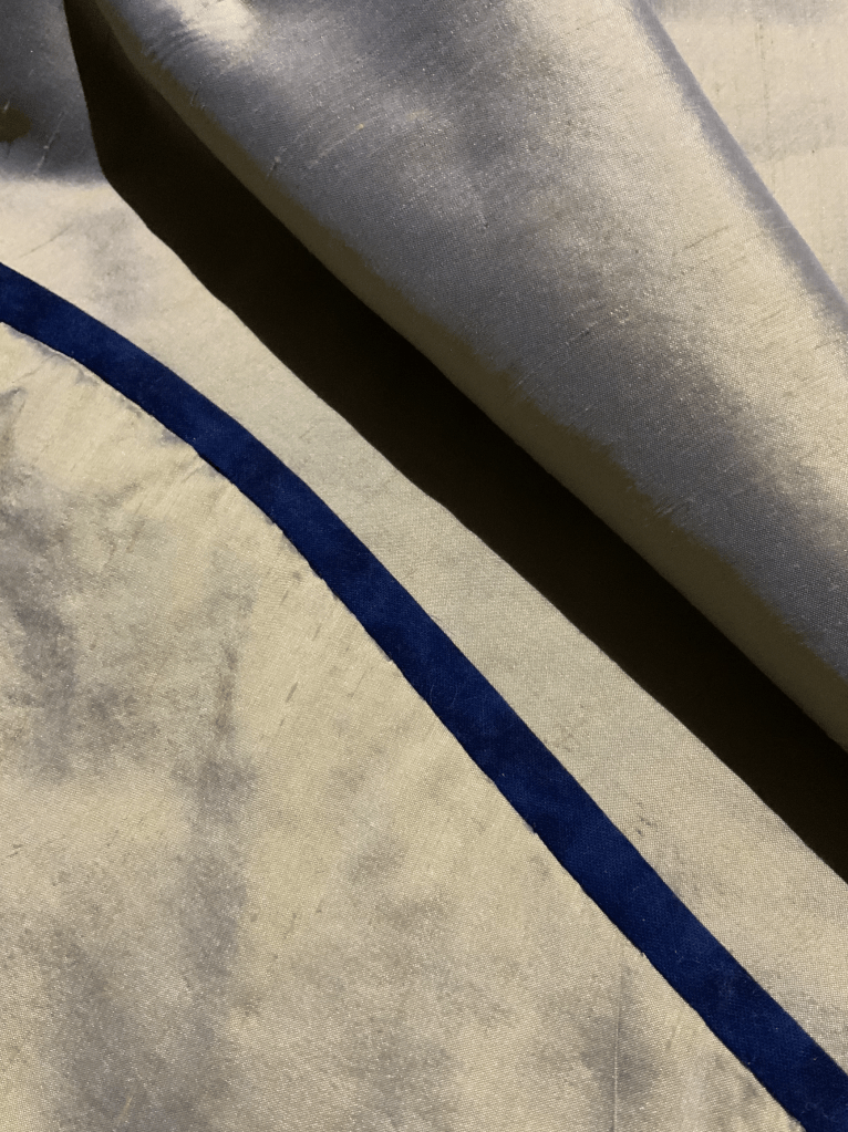I choose a gold silk dupioni to line the vest. I finished off the armholes and the hem first, then layered the vest and the fabric, wrong sides together. I used a binding to finish off the remaining edges.
