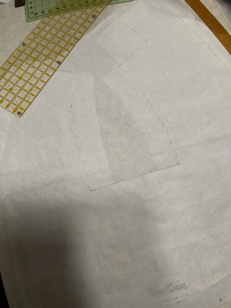 Before I start a project I always look through Pinterest, and design ideas that I have saved etc. and come up with a rough idea of the way I want to go. In this case I made a few copies of the vest right front, and played around with design lines until I liked how it looked on paper. I cut the pattern apart and I started with the main front panel. I did that panel completely before I worked on the rest.