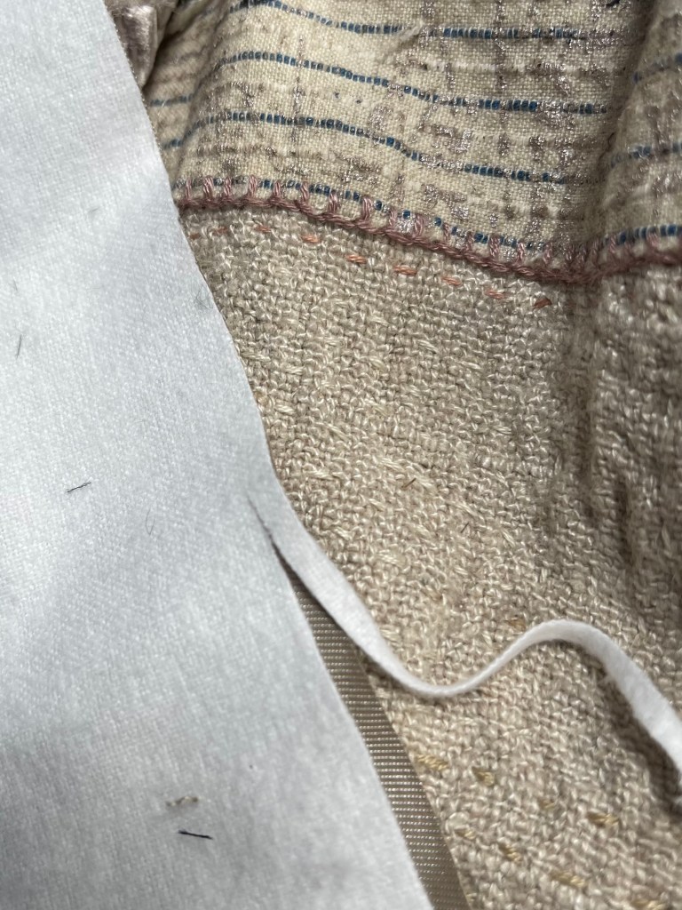 At this point I wanted to add more hand stitching to highlight the seams and I really like how it came out. I did not trust myself to have the stitches look nice so I marked the underlining and did a lot of my stitching on the wrong side.