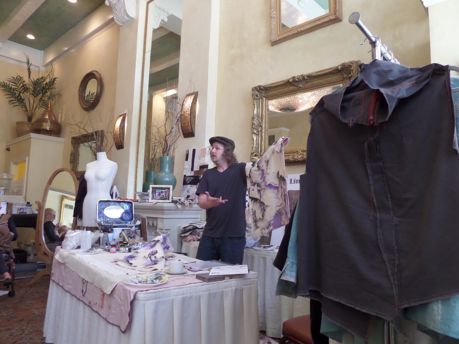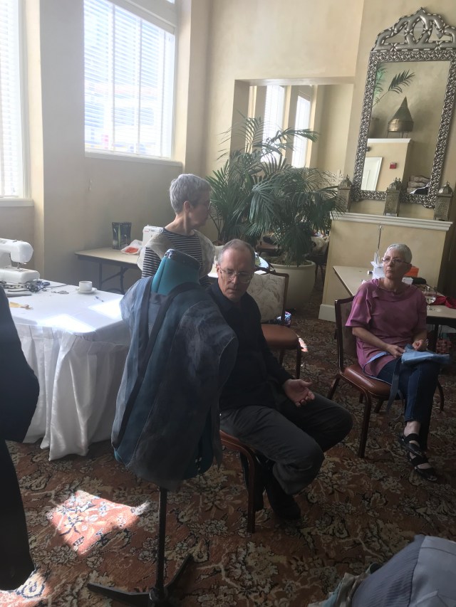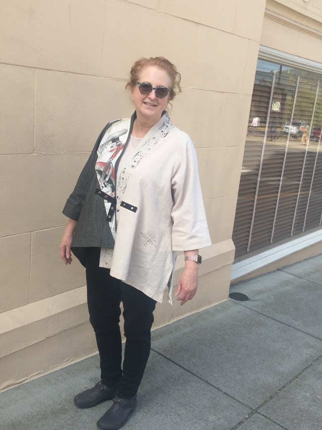 Mollie made a great jacket using one of Diane’s printed panels. John, our favorite male and his wife Marta make beautiful garments from fabric they have dyed and no one can make a shirt like John.