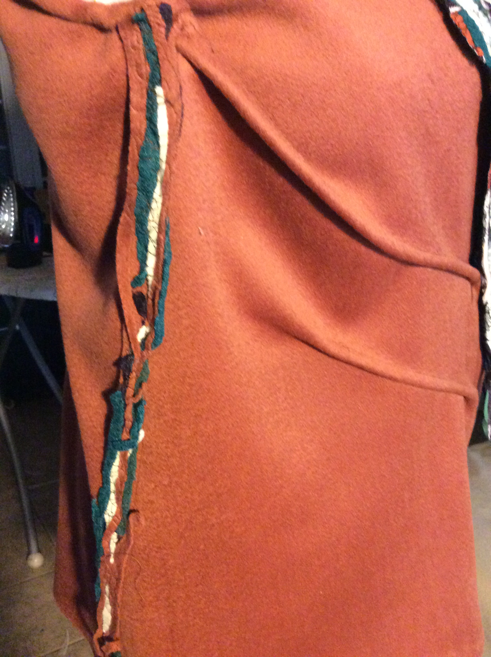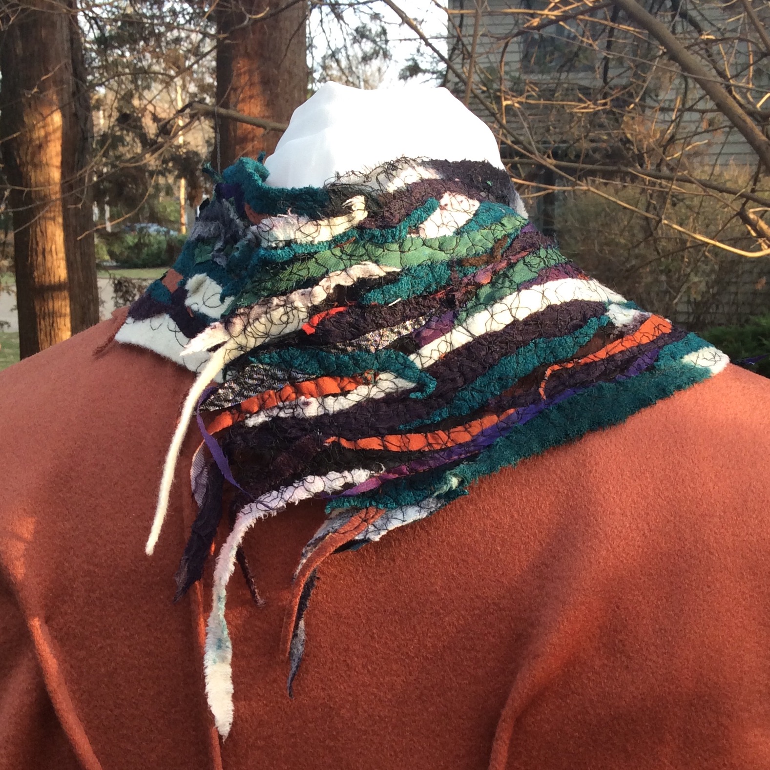 I made an extra collar piece and played around with the layout. I love how it came together in the back, and just put a few hand stitches to keep it in place.