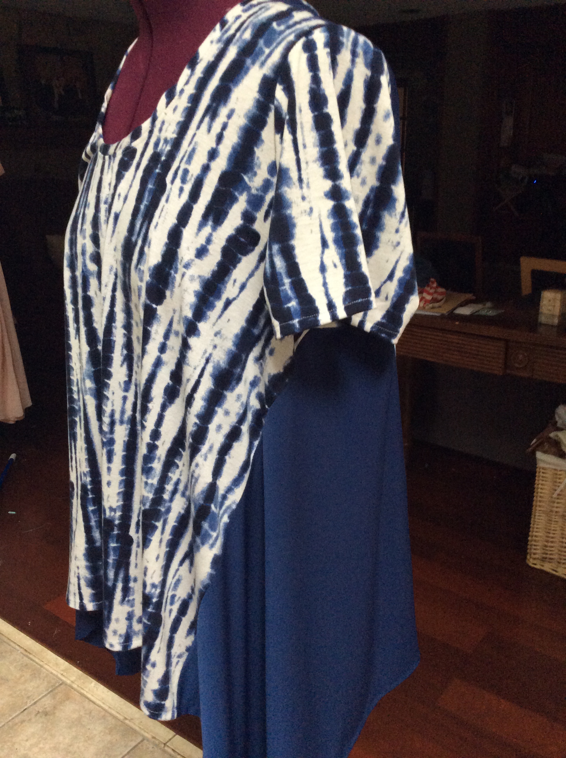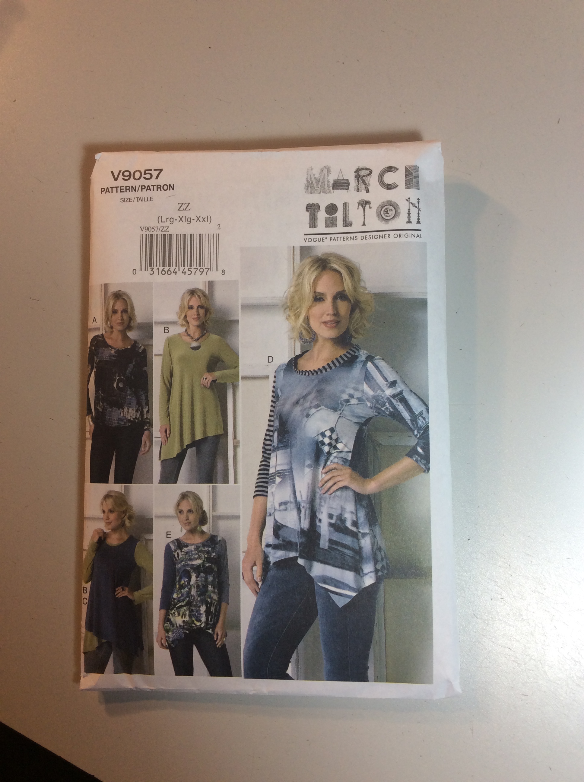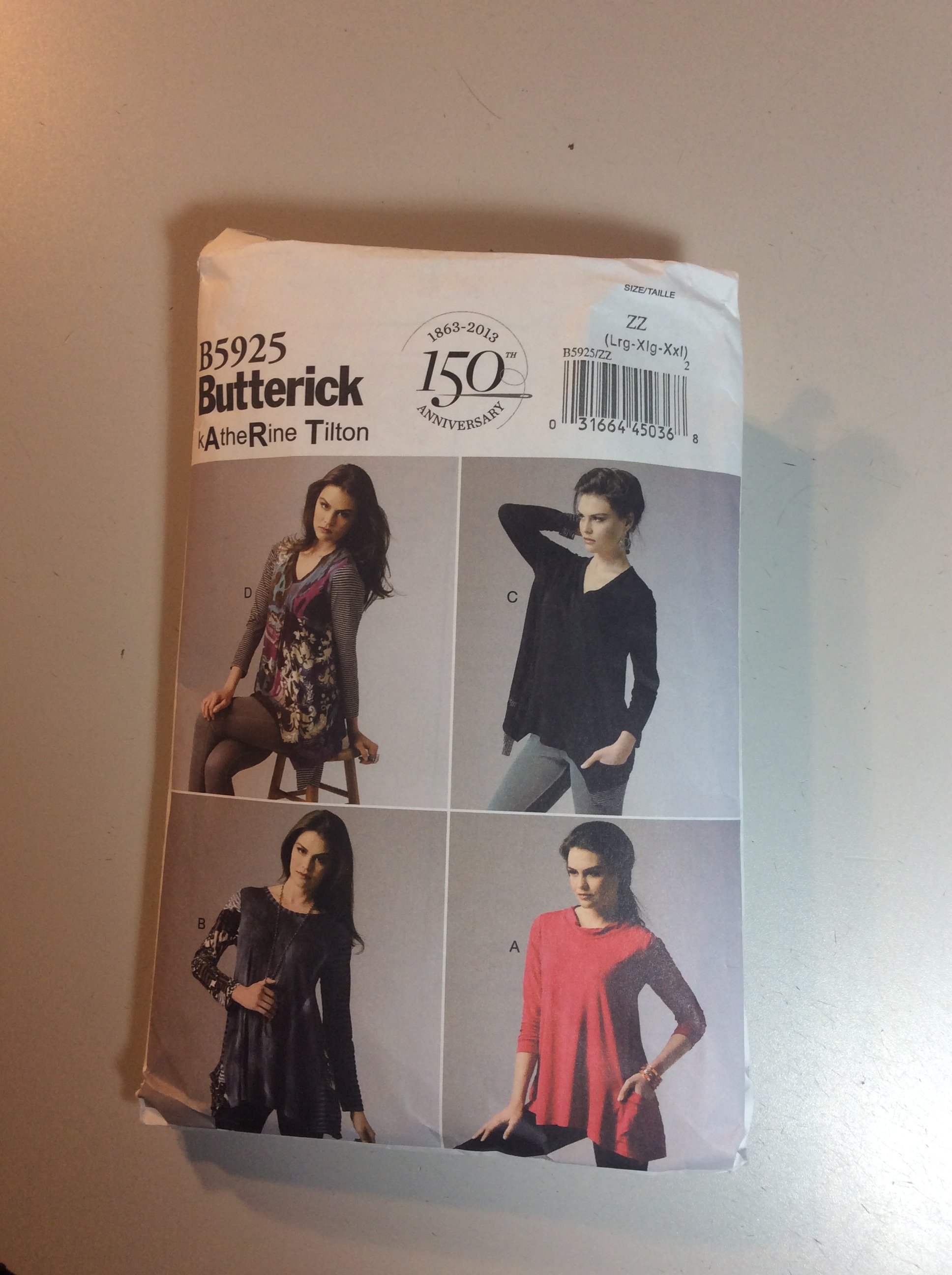Vogue 5925 is one of my favorites. I have made it a few times and I really like the seaming on the back. I only had a small amount of this knit so adding the solid worked great and highlights the detail. This has a front seam but I made it a fold and changed the neckline from a V to a curve. I also added I think 3 ins to this pattern.