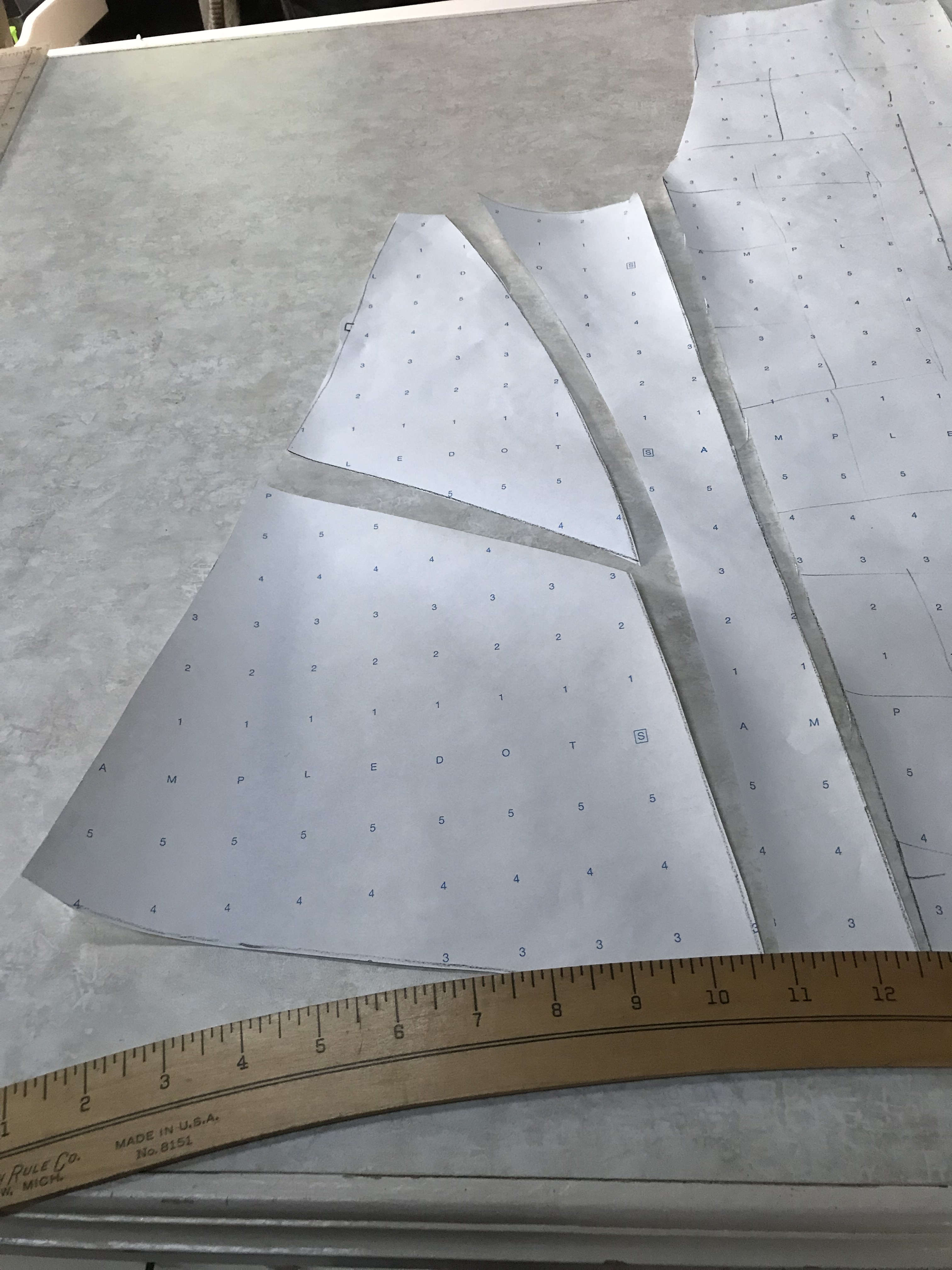 Before I start a project I always look through Pinterest, and design ideas that I have saved etc. and come up with a rough idea of the way I want to go. In this case I made a few copies of the vest right front, and played around with design lines until I liked how it looked on paper. I cut the pattern apart and I started with the main front panel. I did that panel completely before I worked on the rest.