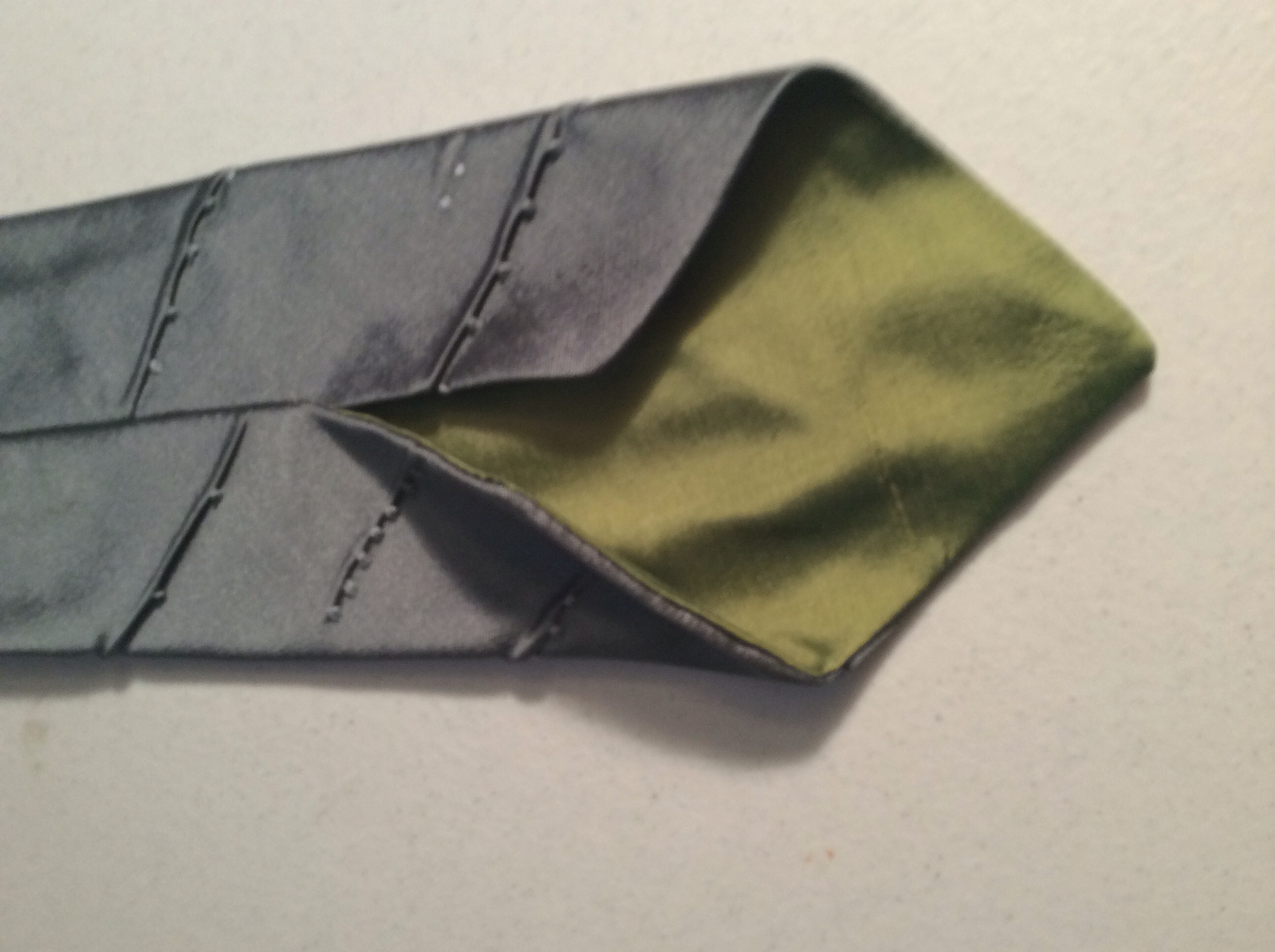 I do the same with the lining and before I close it I reach inside and sew these two short seams together and this prevents the lining from moving.