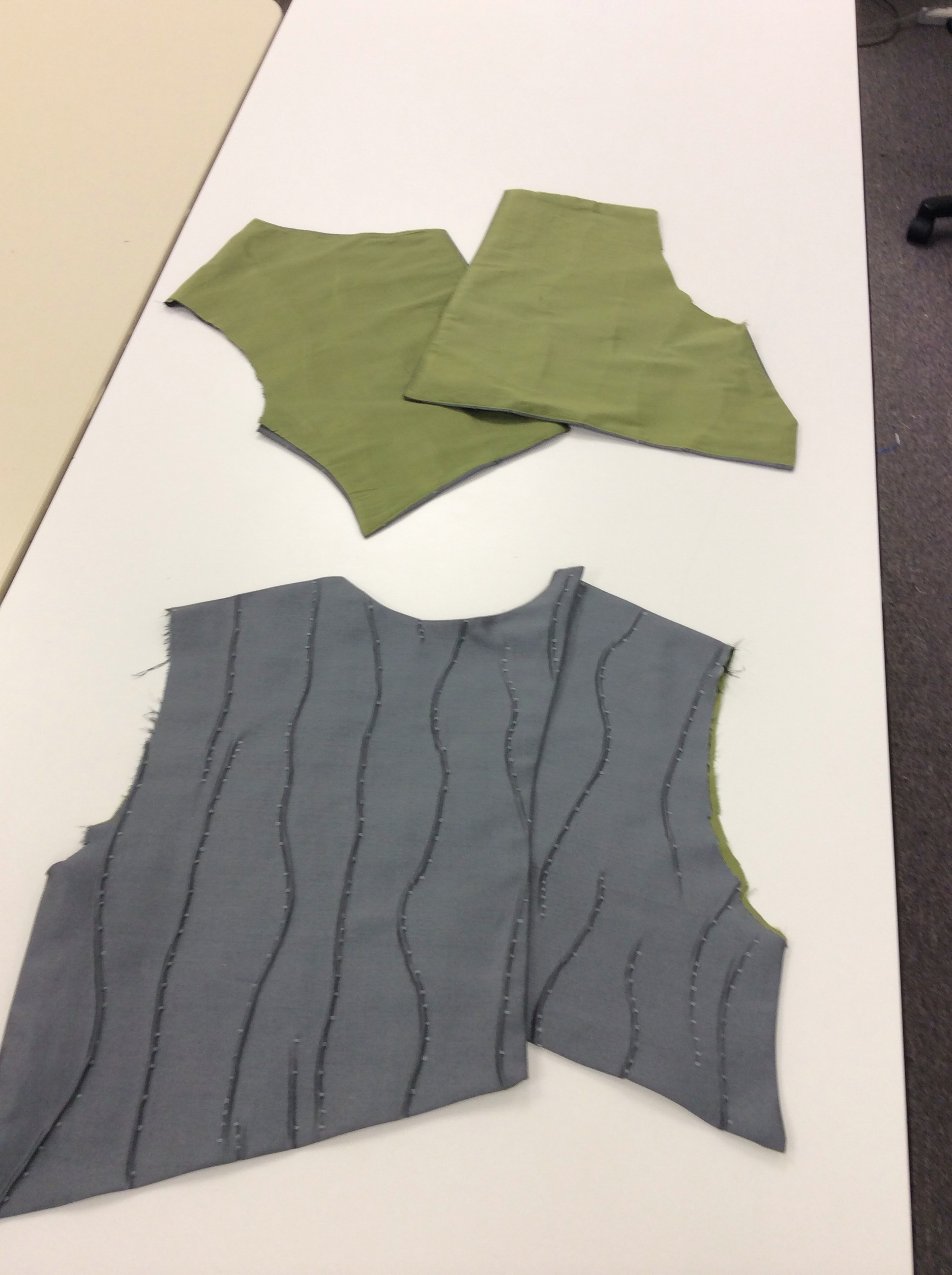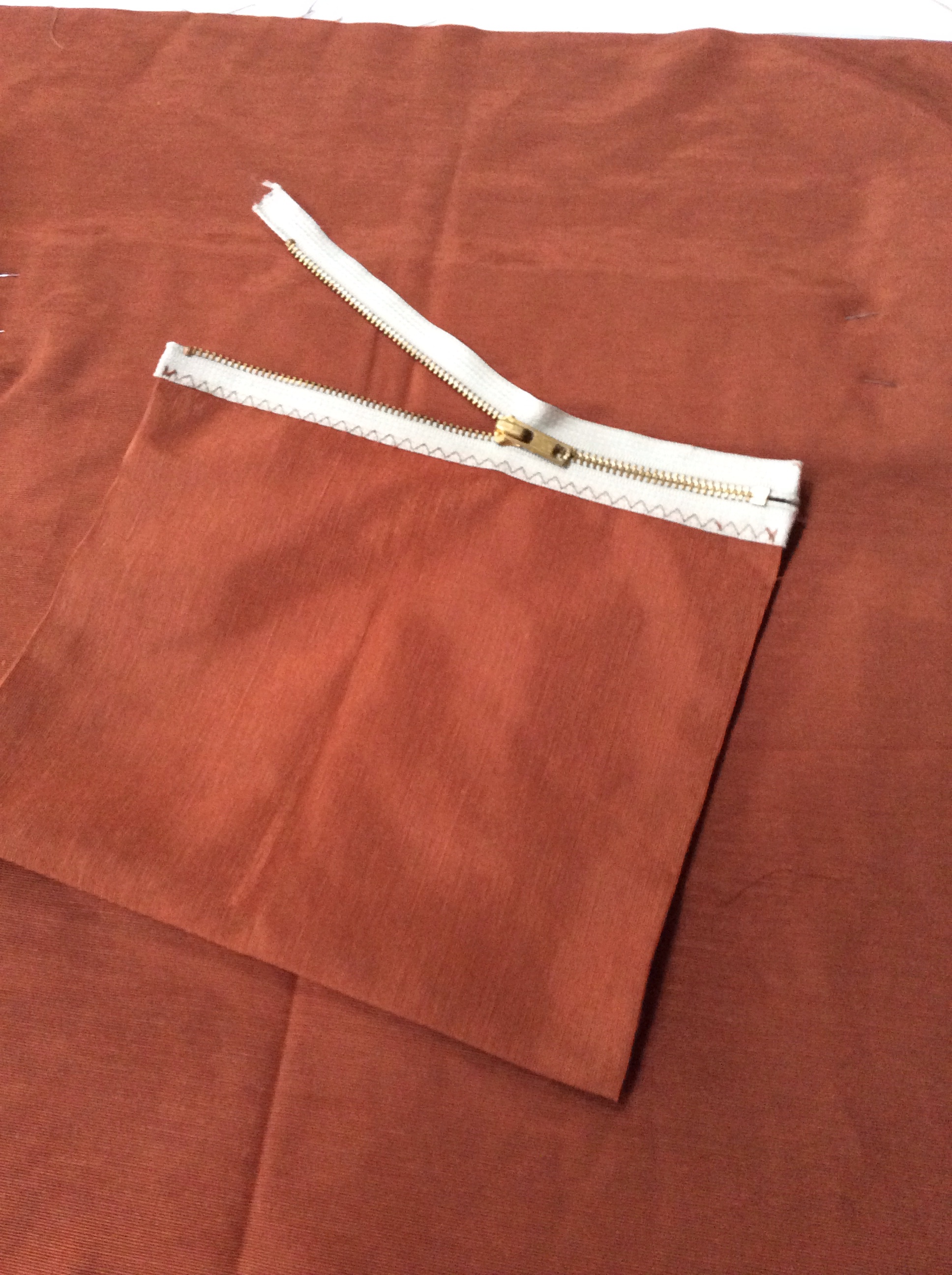 I finish three sides of the zippered one,and use the zipper to finish the top. It’s easy to attach it to the lining and as the fabric is double it makes for a strong pocket with no raw edges.